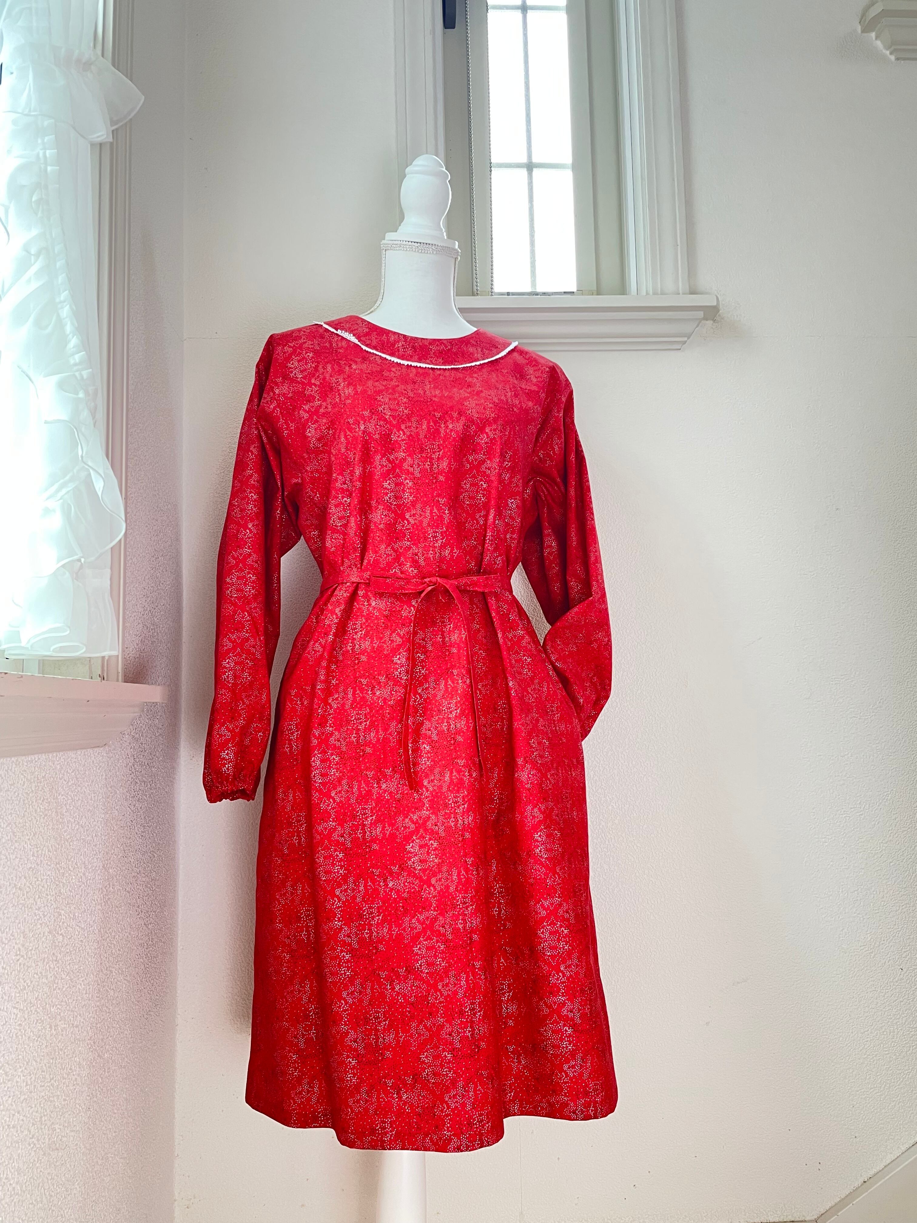 こちらの真っ赤なプリント割烹着は、食卓やキッチンでの時間を特別に演出するアイテムです。