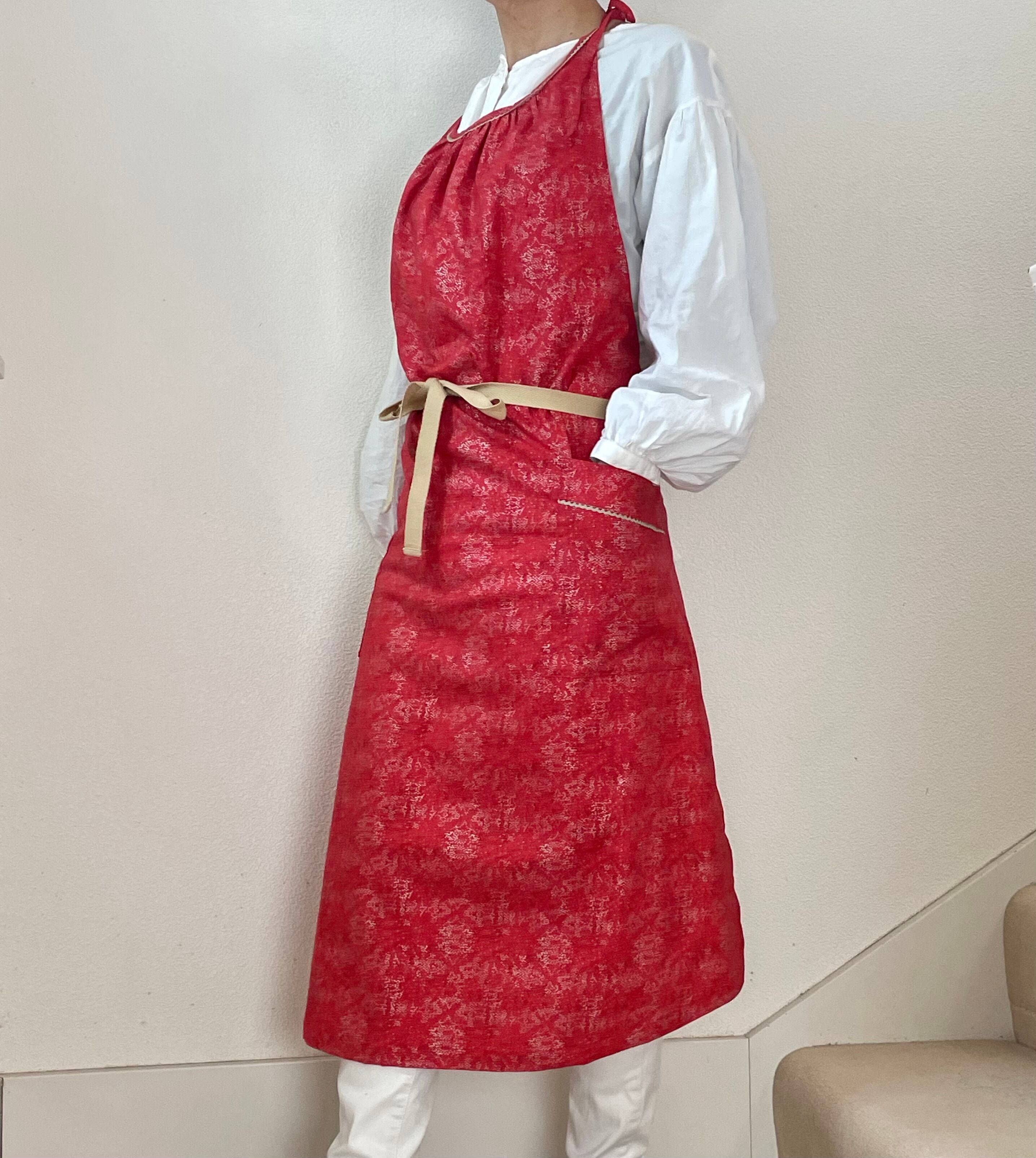 こちらの真っ赤なプリントエプロンは、食卓やキッチンでの時間を特別に演出するアイテムです。