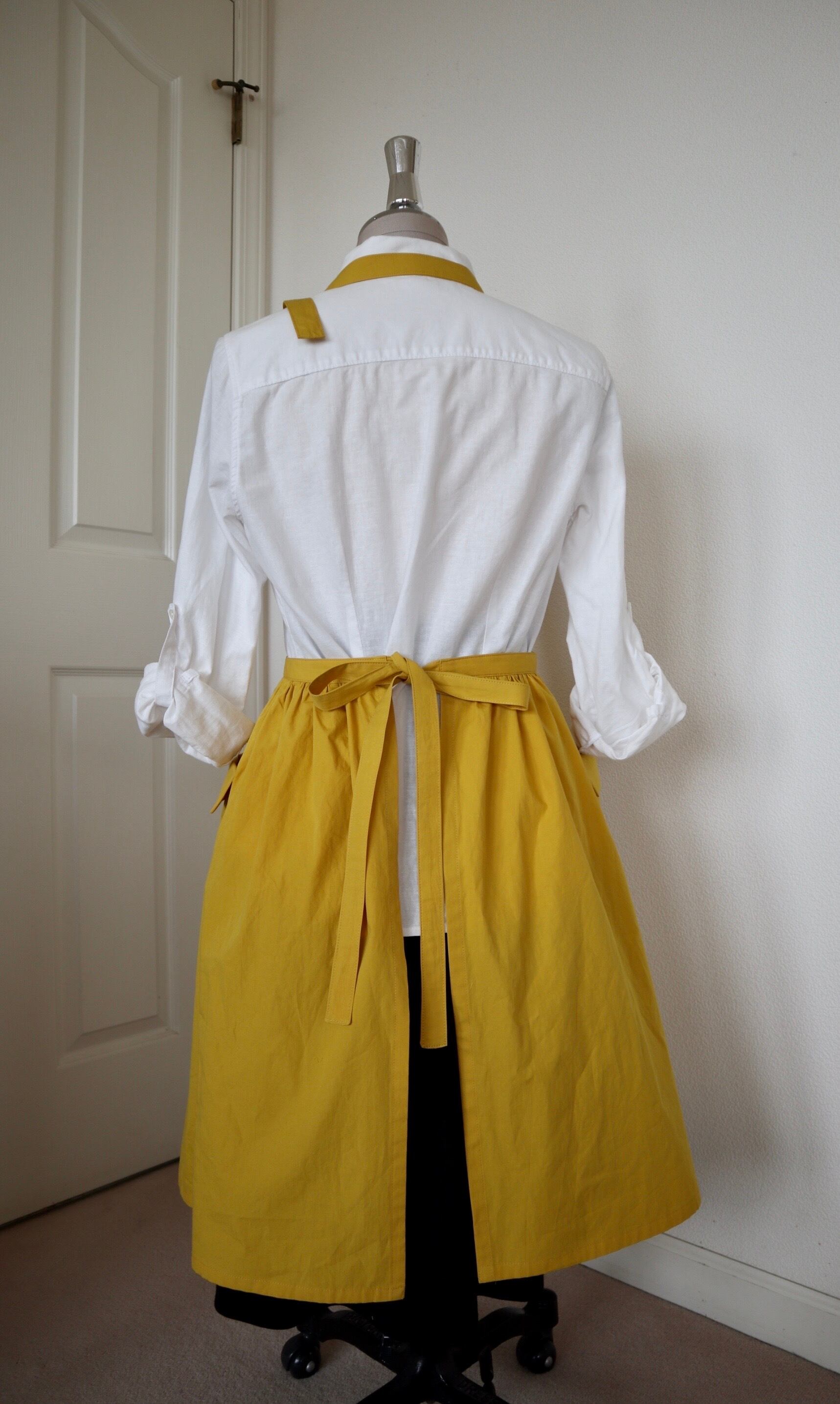 サフランカラーのたっぷりギャザーのスカートがかわいいデザイン。