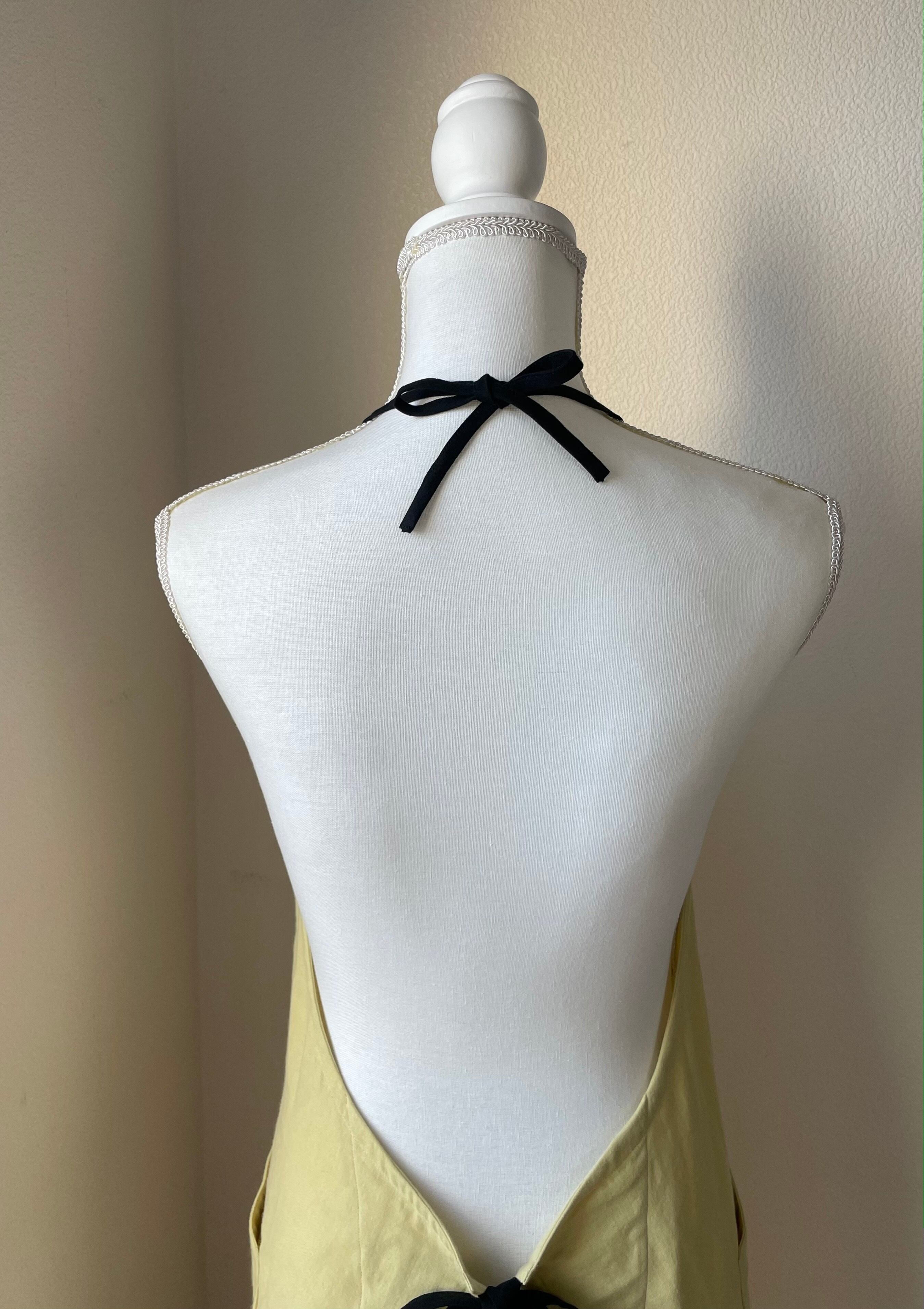 腰ヒモは前で結んでも、後ろで結んでAラインのドレス風に使用しても素敵だと思います。
